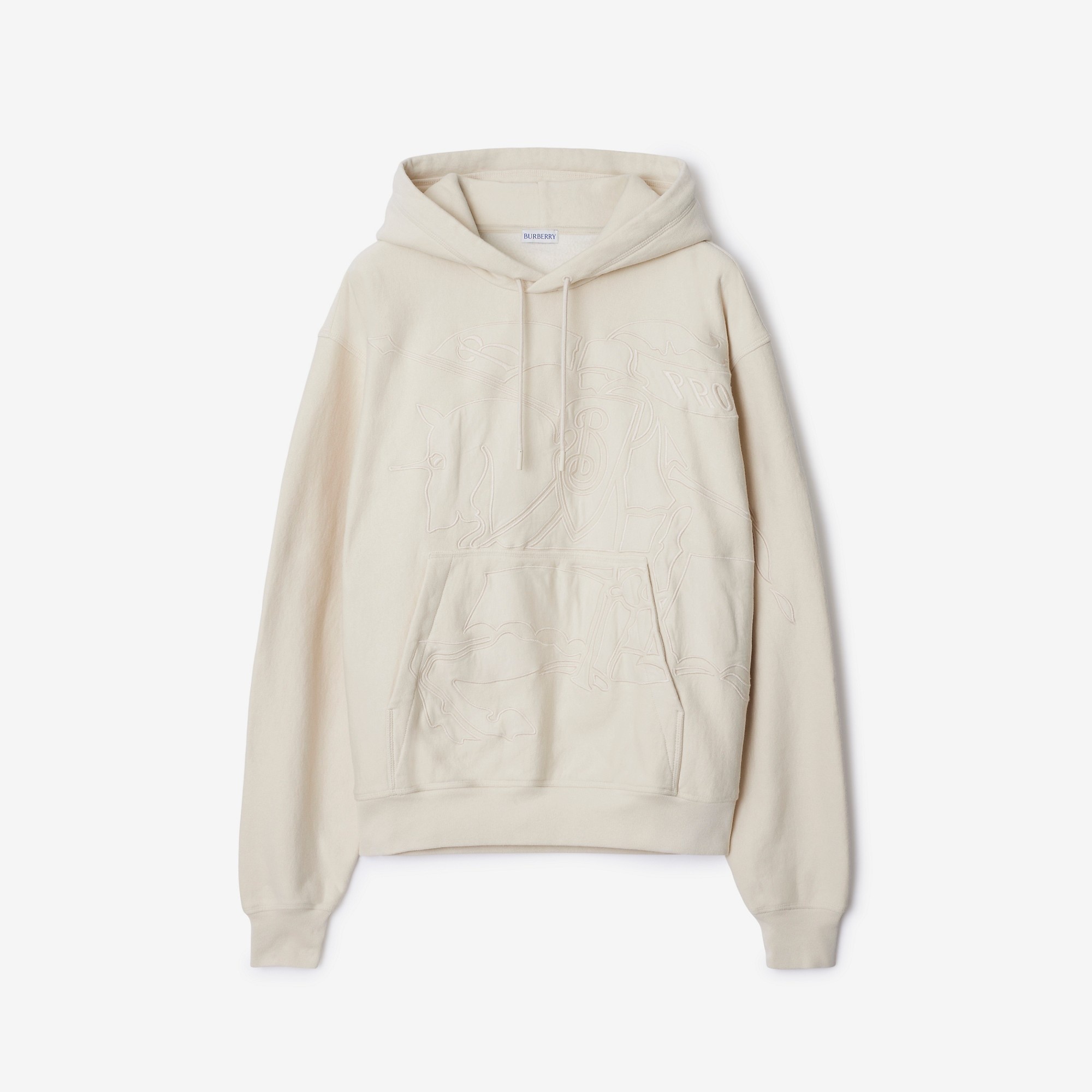 Product Details A hoodie knitted in a garment-dyed cotton blend, appliqued with a tonal Equestrian Knight Design across the front and sleeve. The style is cut to an oversized fit. - Drawcord hood - Pouch pockets - Rib-knit trims - Oversized fit: our loosest cut, designed for exaggerated proportions. We recommend sizing down. - Machine wash - Item 80995621 Size & Fit - Length: 71cm/28in (size UK L) - Model’s height: 186cm/6ft 1in. Model wears size UK L Fabric & Care - 93% cotton, 7% polyester - Trims: 100% cotton; 99% cotton, 1% elastane - Made in Portugal