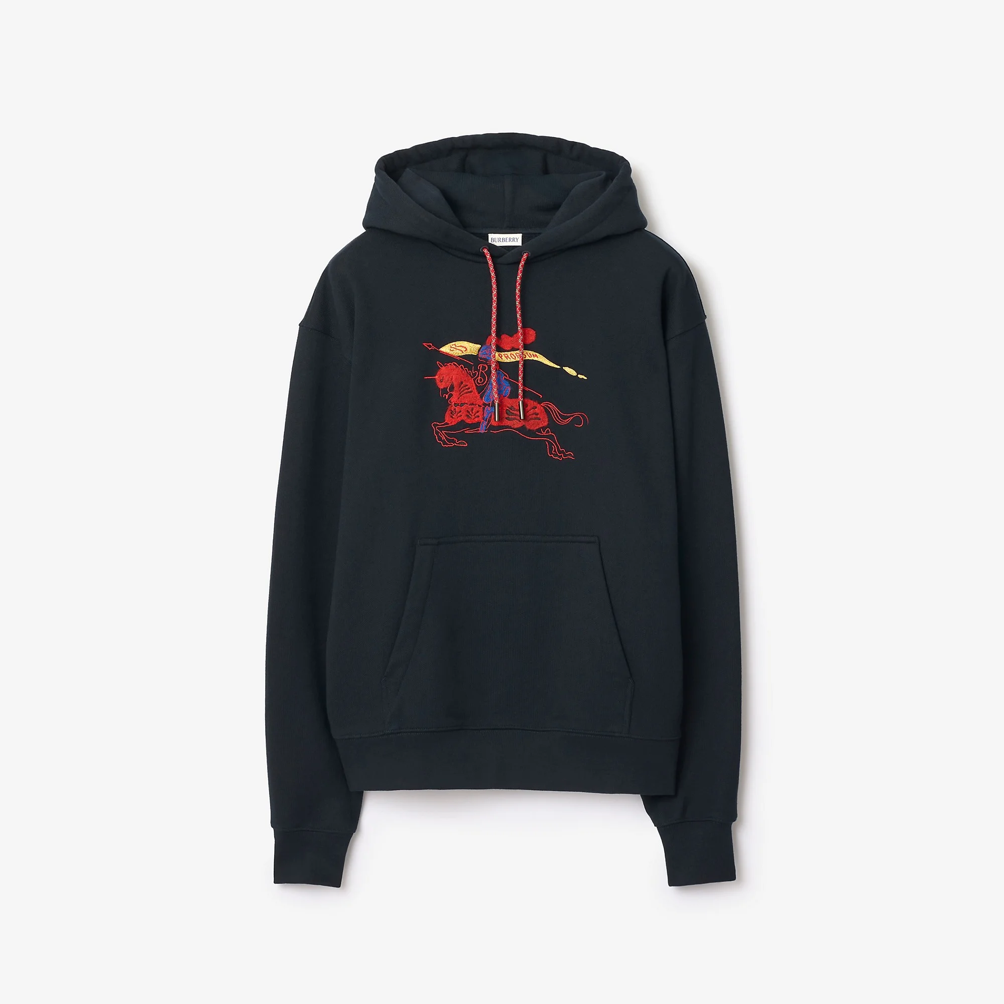 Product Details Relaxed fit: a looser cut than our regular fit. A hoodie made from lightweight loop-back cotton, cut to a relaxed fit. Created as part of our Year of the Horse capsule, the style is embroidered with a seasonal Equestrian Knight Design, playfully reimagining our house code in textural and metallic threads. - Drawcord hood - Pouch pockets - Rib-knit trims - Machine wash - Item 81184101 Size & Fit - Relaxed fit: a looser cut than our regular fit. - Length: 70.5cm/27.8in (size UK M) - Model’s height: 184cm/6ft. Model wears size UK M Fabric & Care - 100% cotton - Trim: 99% cotton, 1% elastane - Embroidery: 34% viscose, 25% wool, 24% acrylic, 9% polyester, 5% metallic fibre, 3% polyamide - Made in Portugal
