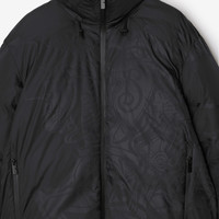 Product Details A puffer jacket in ripstop nylon, filled with goose down and feathers. The design is woven with a fil coupe Equestrian Knight Design and is cut to an oversized fit. - Two-way zip closure - Detachable drawcord hood - Side zip pockets - Drawcord hem - Elasticated cuffs - This item will be packaged in a recycled cotton tote unless the gift packaging option is selected at checkout. - Oversized fit: our loosest cut, designed for exaggerated proportions. Consider taking a size down. - Machine wash - Item 80955861 Size & Fit - Length: 69.5cm/27.4in (size UK M) - Model’s height: 191cm/6ft 3in. Model wears size UK M Fabric & Care - Outer: 100% polyamide - Lining: 100% polyamide - Filling: 90% goose down, 10% goose feathers - Wadding: 100% polyester fibres - Imported