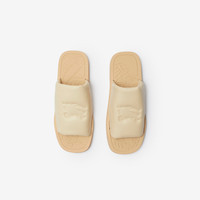 PRODUCT DETAILS A pair of Italian-made slides in nappa leather, debossed with the Equestrian Knight Design. Upper: 100% lambskin Lining: 60% lambskin, 40% polyurethane Sole: 100% thermoplastic polyurethane Made in Italy Item 80815691