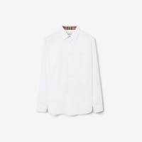 Product Details A shirt in stretch cotton, embroidered with the Equestrian Knight Design. Tailored to a slim fit, the style is lined with Burberry Check at the collar and cuffs. - Button closure - Spread collar - Single-button cuffs - Curved hem - Embroidered Equestrian Knight Design at chest - Slim fit: this style is cut to a fitted silhouette. Fits true to size, take your normal size. - Machine wash - *Containing organic cotton - Item 80714651 Size & Fit - Shirt length: 77cm/30.3in (size UK M) - Model’s height: 188cm/6ft 2in. Model wears size UK M Fabric & Care - 96% cotton, 4% elastane* - Buttons: mother-of-pearl - Imported