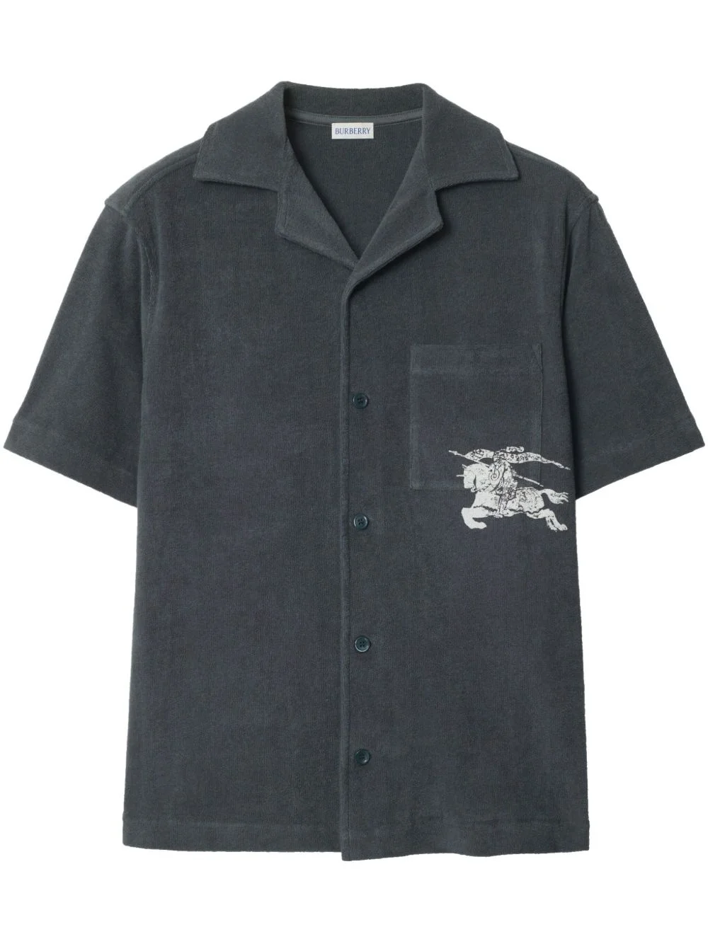 EKD Towelling shirt Highlights - Grey - Towelling finish - Front button fastening - Signature equestrian knight motif - Short sleeves Imported Composition Mother of Pearl 100%, Cotton 100%