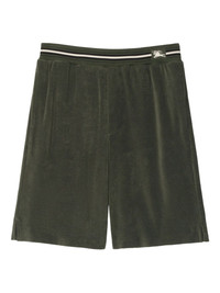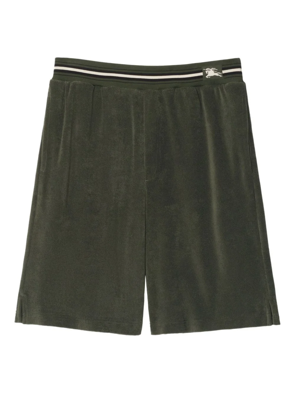 elasticated-waist shorts Highlights - Olive green - Elasticated waistband - Logo patch detail - Side slip pockets - Rear patch pocket Imported Composition Fabric 100% Washing instructions Read Manufacturer Guidelines