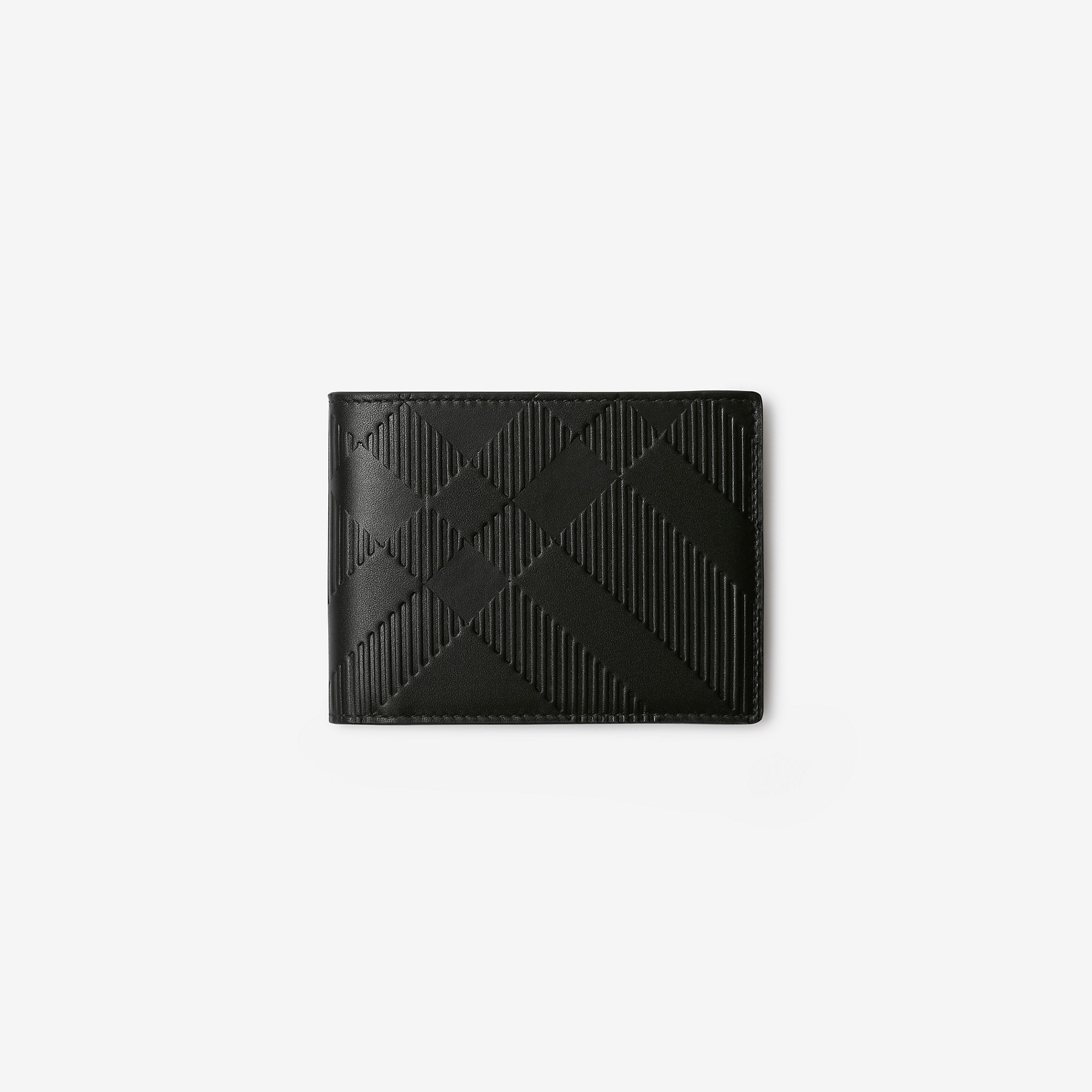 Product Details A slim bifold wallet in smooth calf leather with an embossed check pattern. The design is sized to fit US, Australian and Middle Eastern currencies. - Six card slots - Note compartment - Two slip pockets - Hand-painted edges - Embossed Burberry lettering at inner - Comes with a dust bag - Item 80995181 Size & Fit - 10.5 x 8.5cm/4.1 x 3.4in Fabric & Care - Outer: 100% calf leather - Lining: 100% lambskin - Pocket lining: 53% cotton, 47% polyurethane - Imported