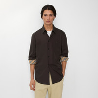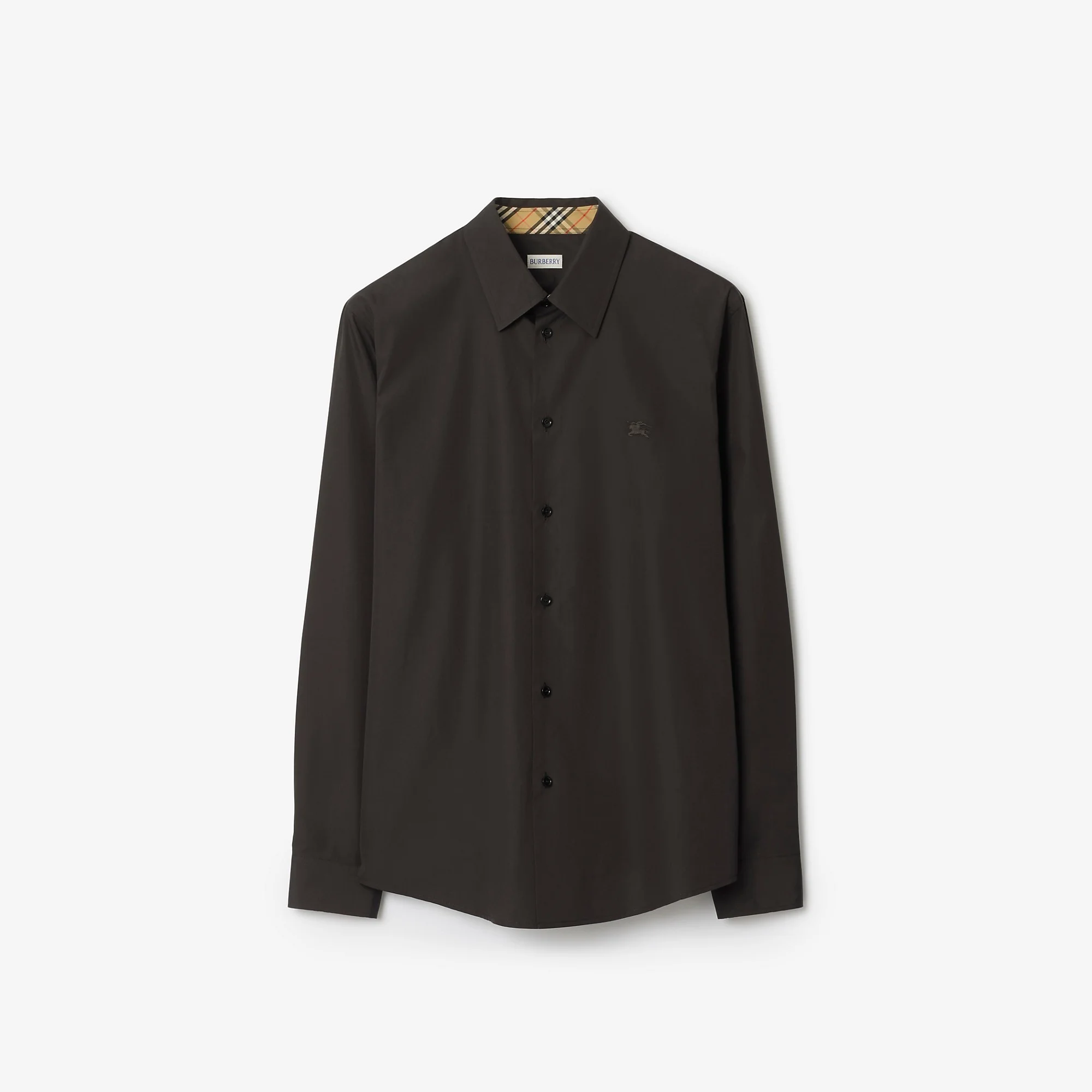 Product Details A long-sleeved shirt made from cotton poplin, lined with Burberry Check at the collar and cuffs. The style is cut to a regular fit and embroidered with a tonal Equestrian Knight Design. - Button closure - Point collar - Single-button cuffs - Curved hem - Embroidered Equestrian Knight Design at chest - Regular fit. Fits true to size, take your normal size. - Machine wash - Item 81155101 Size & Fit - Length: 79.5cm/31.3in (size UK L) - Model’s height: 187cm/6ft 2in. Model wears size UK L Fabric & Care - Outer: 100% cotton - Lining panels: 100% cotton - Buttons: mother-of-pearl - Imported