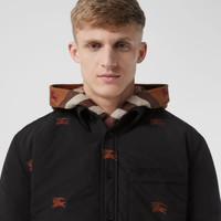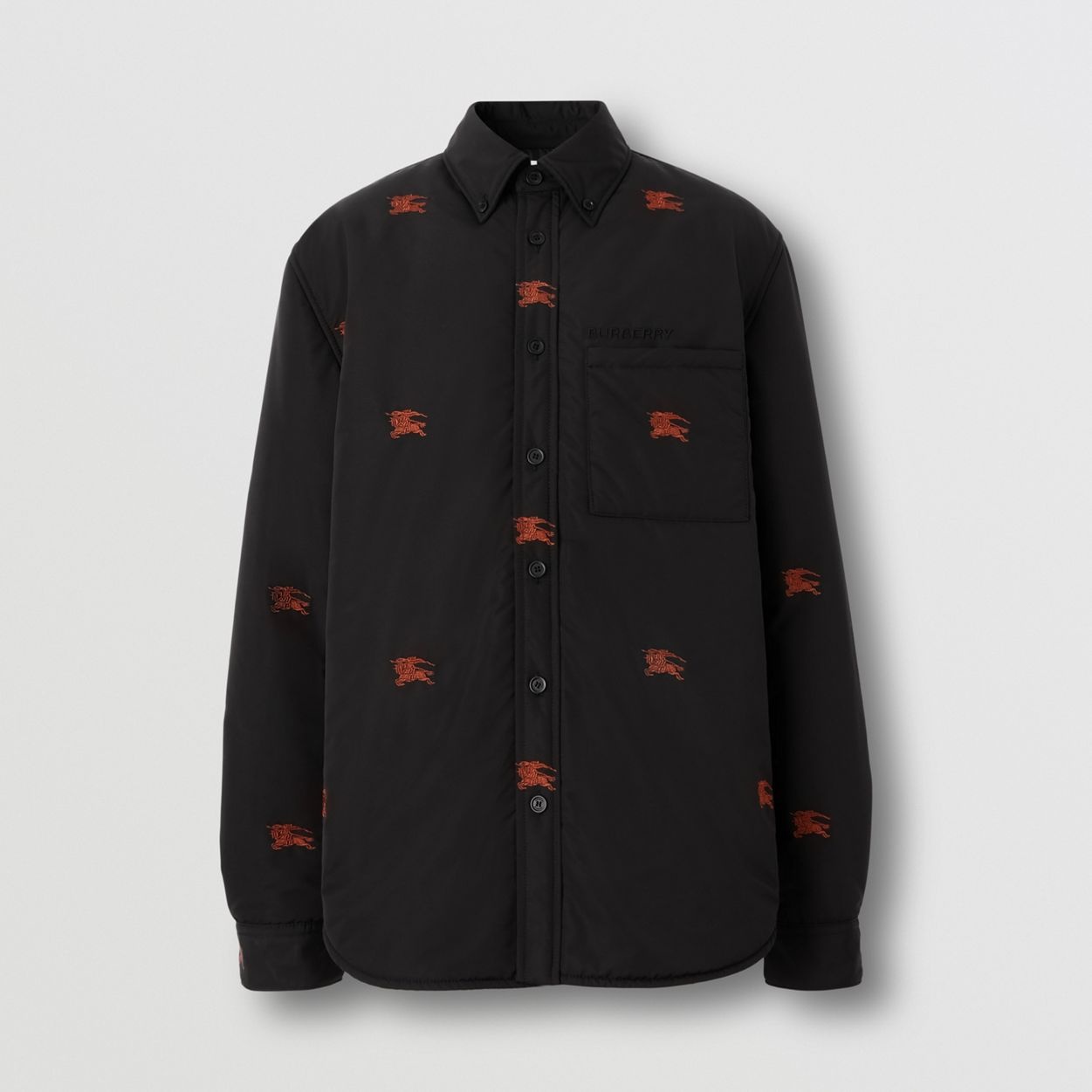 PRODUCT DETAILS A lightly padded overshirt in nylon embroidered with our Equestrian Knight Device and logo. The design made its debut in Riccardo Tisci’s Autumn/Winter 2022 menswear collection, a playful twist on tradition that builds on our British heritage and house codes. Shirt length: 86cm/33.9in. This is based on a size UK M as proportions change slightly according to size. Model's height: 192cm/6ft 4in. Model wears size UK M. Outer: 100% polyamide Lining: 100% polyamide Pocket lining: 100% cotton Filling: 100% polyester Buttons: mother-of-pearl Patch pocket Single-button cuffs Button-down collar Curved hem Embroidered Burberry lettering at chest Specialist dry clean Made in Italy 80610501