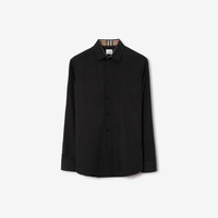 Product Details A shirt in stretch cotton, embroidered with the Equestrian Knight Design. Tailored to a slim fit, the style is lined with Burberry Check at the collar and cuffs. - Button closure - Spread collar - Single-button cuffs - Curved hem - Embroidered Equestrian Knight Design at chest - Slim fit: this style is cut to a fitted silhouette. Fits true to size, take your normal size. - Machine wash - *Containing organic cottton - Item 80717991 Size & Fit - Length: 78.5cm/30.9in (size UK L) - Model’s height: 188cm/6ft 2in. Model wears size UK L Fabric & Care - 96% cotton, 4% elastane* - Buttons: mother-of-pearl - Imported