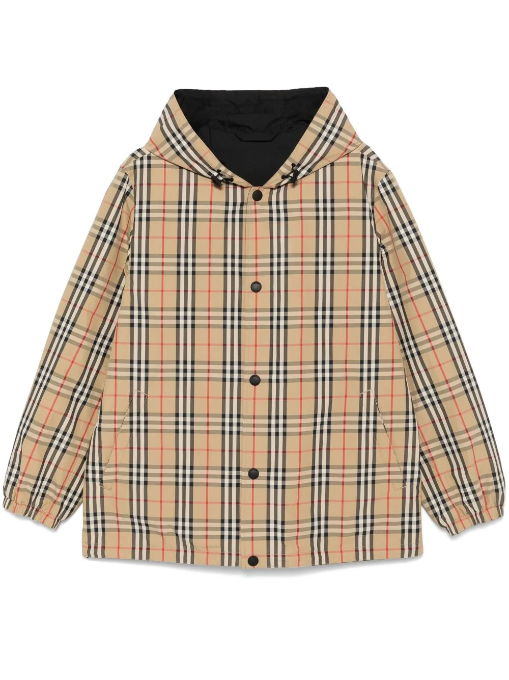 reversible Vintage-Check jacket Highlights - Front press-stud fastening - Drawstring hood - Long sleeves - Elasticated cuffs - Drawstring hem - Side a: - Archive beige - Vintage check pattern - Two side welt pockets - Side b: - Black - Signature equestrian knight motif - Two side pouch pockets Imported Composition Outer: Polyamide 100% Lining: Polyamide 100% SIZE & FIT Model measurements Height 6 ft 2 in(1.87 m) Bust/Chest 37.79 in(96 cm) Hips 37.79 in(96 cm) Waist 30.31 in(77 cm) FittingInformation Designed for a relaxed fit, this piece allows for comfort and movement when worn The adjustable drawstring means that you can adjust this piece’s fit to suit your comfort and preference Made from a lightweight non-stretch fabric Washing instructions Machine Wash