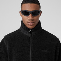 PRODUCT DETAILS A funnel-neck jacket reimagined in a tactile wool-blend fleece. The mesh-lined design is embroidered with a tonal oak leaf crest and logo – a reconstructed version of our archive emblem. - Jacket length: 66.5cm/26.2in. This is based on a size UK M as proportions change slightly according to size. - Model’s height: 188cm/6ft 2in. Model wears size UK M. Relaxed fit Outer: 80% polyester, 20% wool Panels: 64% cotton, 36% polyamide Lining: 100% polyester Two-way zip closure Front zip pockets Drawcord hem Embroidered Burberry lettering at front Specialist dry clean Imported Item 80628141