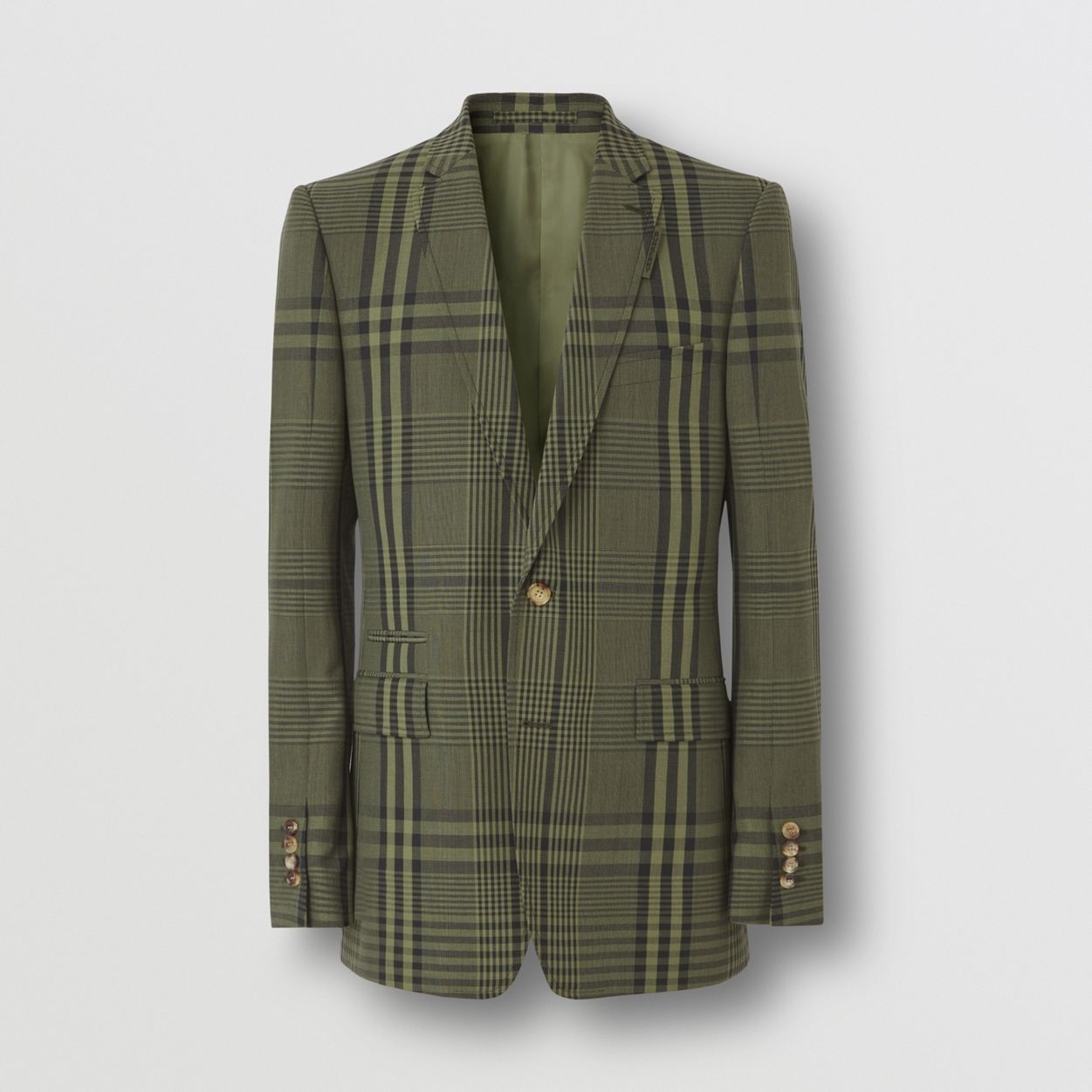 PRODUCT DETAILS A wool-blend tailored jacket woven in a seasonal check. Cut in our English fit, it has an elongated silhouette inspired by British tailoring with a slim waist and prominent, rolled shoulder. Made and hand-finished in Italy, it has a half-canvas construction with several layers of natural horsehair to create a structured chest and soft lapel roll. English fit Jacket length: 76cm/29.9in. This is based on a size IT 50 as proportions change slightly according to size. Outer: 55% polyester, 45% wool Undercollar: 54% linen, 32% wool, 14% viscose Lining: 100% cupro Sleeve lining: 50% acetate, 50% cupro Buttons: buffalo horn Single-breasted closure, notch lapels, hand-stitched buttonhole on lapel, chest welt pocket, flap pockets, interior button-through jet pockets, interior ticket pocket, working cuffs, double vent Specialist dry clean Made in Italy Jacket sleeves can be altered using our in-store service. Please see FAQs for details. 80415501