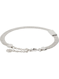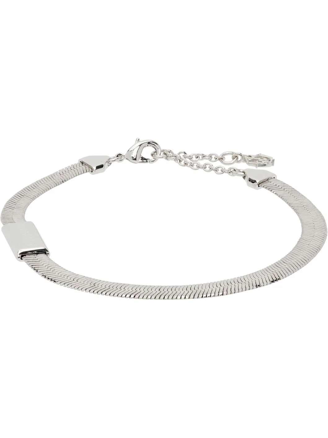 Snake-chain bracelet in silver-tone brass. · Palladium plating · Engraved check pattern throughout · Logo plaque at face · Logo charm at adjustable lobster clasp · Full length: L10" Supplier color: Silver Palladium-plated brass. Made in Italy 261376M142005
