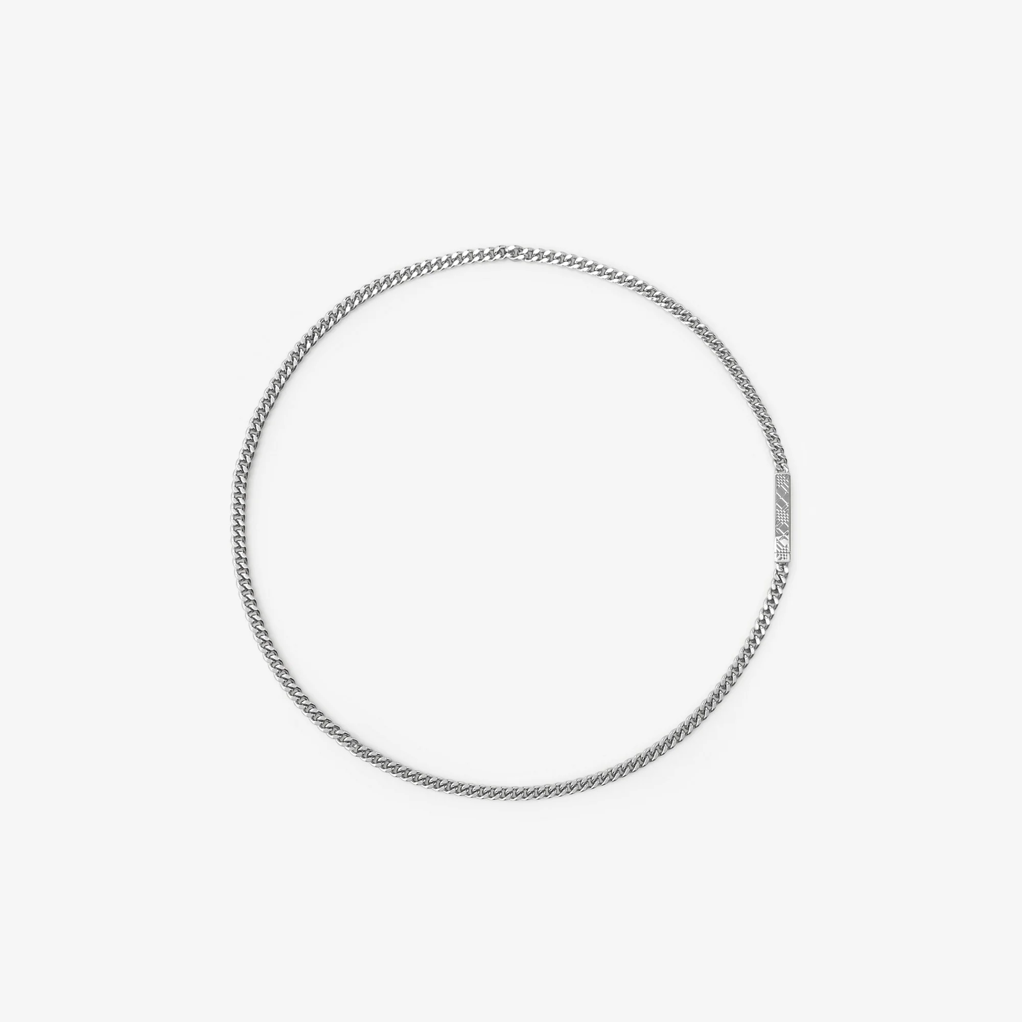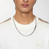 Product Details A palladium-plated chain necklace made in Italy. The design is secured with a sleek push-button closure, intricately engraved with a check pattern. - Push-button closure - Engraved Burberry lettering at closure - Comes with a dust bag - Item 81142901 Size & Fit - Length: 58cm/22.8in Fabric & Care - 100% brass with palladium plating - Made in Italy