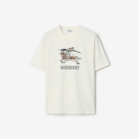 Product Details A T-shirt in midweight cotton jersey, cut to a relaxed fit. The crew-neck style is illustrated with our logo, Equestrian Knight Design, and Burberry Check in chain-stitch embroidery. - Rib-knit neckline - Embroidered Burberry lettering at front - Relaxed fit: a looser cut than our regular fit. - Machine wash - Item 81210341 Size & Fit - Length: 72.5cm/28.5in (size UK M) - Model’s height: 185cm/6ft 1in. Model wears size UK M Fabric & Care - 100% cotton - Trims: 97% cotton, 3% elastane; 100% viscose - Made in Portugal