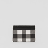 Product Details A compact card case in Burberry Check and topstitched leather, featuring our logo at the front. - Four card slots - Centre slip compartment - Hand-painted edges - Raised Burberry lettering at front - Item 80644601 Size & Fit - 10 x 7.5cm/3.9 x 3in Fabric & Care - Outer: 75% thermoplastic polyurethane, 25% cotton* - Trim: 100% leather - Lining: 100% polyester - *The main material of this product is made with at least 30% bio-based materials - Bio-based materials are derived from renewable natural resources such as plants - Imported