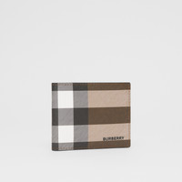 PRODUCT DETAILS A slim bifold wallet in our Exaggerated Check and smooth topstitched leather, designed with a note compartment sized to fit US, Australian and Middle Eastern currencies. The main material of this product is made with at least 30% bio-based materials. Bio-based materials are derived from renewable natural resources such as plants and castor oil. - 10.5 x 8.5cm/4.1 x 3.3in Outer: 75% thermoplastic polyurethane, 25% cotton Trim: 100% leather Lining: 100% polyester Six card slots Note compartment Two slip pockets Hand-painted edges Printed Burberry lettering at front Imported Item 80527961