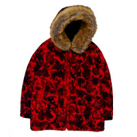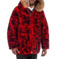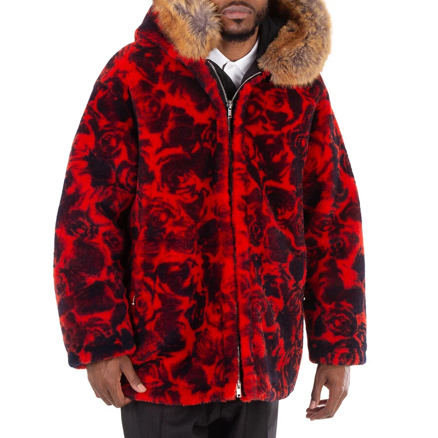 Burberry Men's Outerwear. Fashion category: Coats & Jackets. SKU: 8079087. Burberry Shearling Jacket With Floral Print. This cardinal jacket is crafted from a sheepskin/wool blend with goose down and shearling, featuring an all-over floral print. It has a classic hood, concealed front zip fastening, long sleeves, and a straight hem. The trims are composed of 100% polyester, 96% wool, 3% polyamide, and 1% elastane. The filling consists of 90% goose down and 10% goose feather. The jacket is made from 100% sheepskin/shearling, with a 100% polyester lining. Made in Italy. GENERAL Brand Type: Designer Color: Pillar Ip Pattern INFORMATION Brand: Burberry Gender: Mens Model: 8079087 DETAILS Category: Outerwear Apparel Type: Coats & Jackets Material: Linen, Polyamide, Polyester, Wool ADDITIONAL INFO Jomashop Sku: -8079087N Department: Clothing