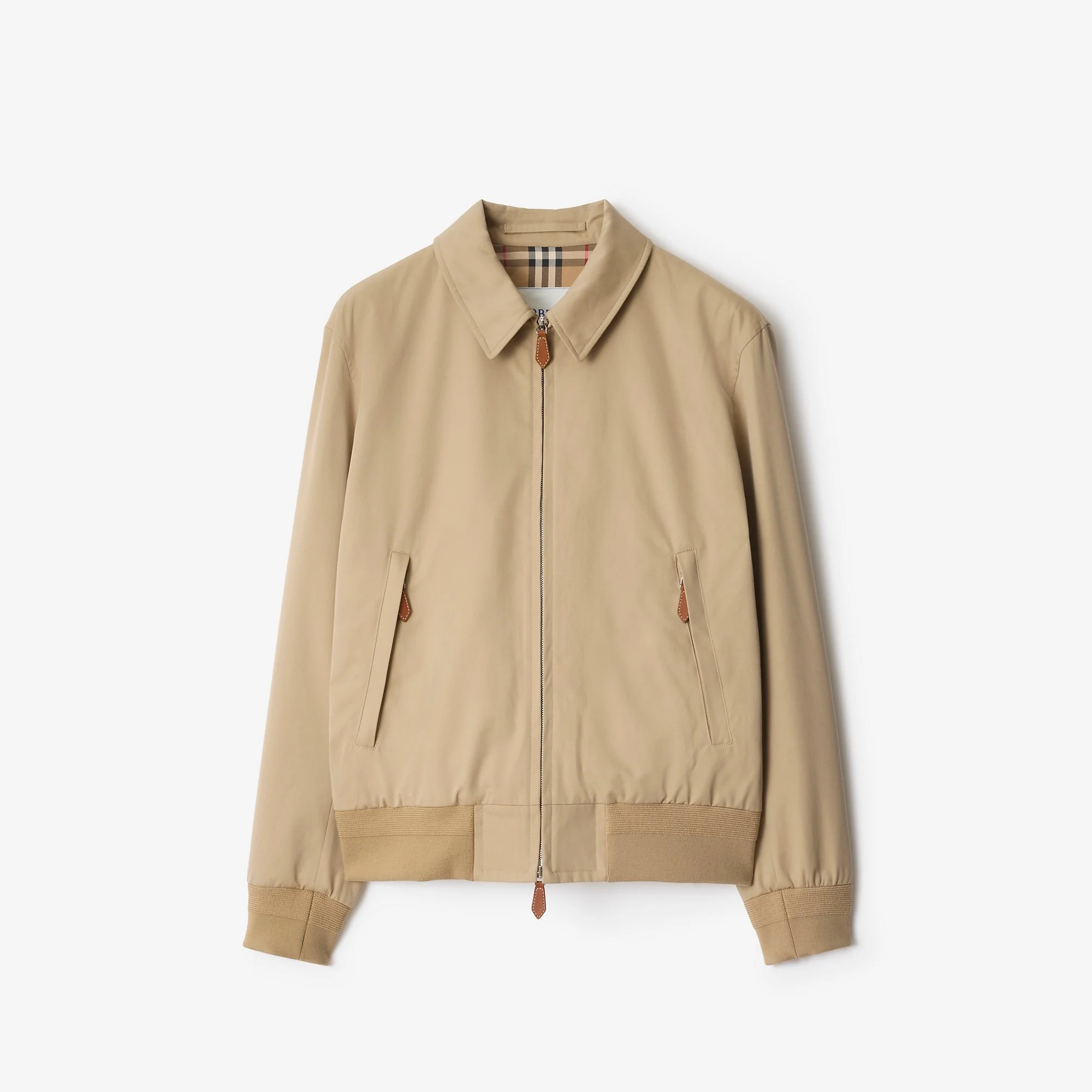 Product Details A Harrington jacket made in Castleford, Yorkshire from shower-resistant gabardine. Inside is Burberry Check cotton in signature archive beige, used to line our coats since the 1920s. The lightly padded design is cut to a relaxed fit and finished with rib-knit trims in a wool blend. - Two-way zip closure - Side zip pockets - Burberry Check lining - Comes with a garment bag - Relaxed fit: a looser cut than our regular fit. Consider taking a size down. - Item 81154541 Size & Fit - Length: 65cm/25.6in (size IT 50) - Model’s height: 187cm/6ft 2in. Model wears size IT 50 Fabric & Care - Outer: 100% cotton - Trim: 89% wool, 9% polyamide, 2% elastane - Lining: 100% cotton - Sleeve lining: 100% viscose - Filling: 100% polyester - Specialist dry clean - Made in Yorkshire, England