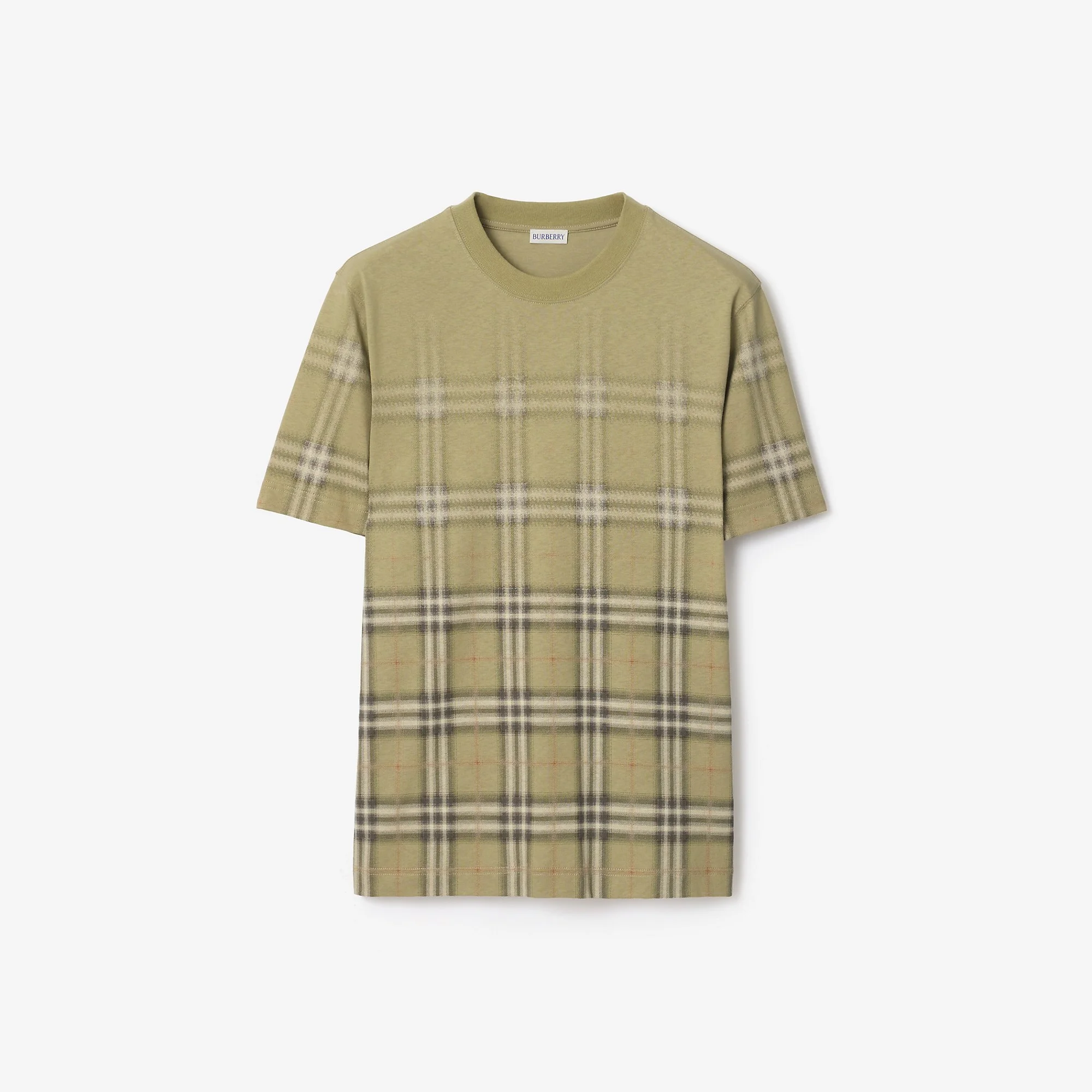 Product Details Relaxed fit: a looser cut than our regular fit. A T-shirt in lightweight cotton jersey, printed with a subtle gradient that blends the Burberry Check into a solid colour. The crew-neck style is cut to a relaxed fit. - Rib-knit neckline - Machine wash - Item 81190231 Size & Fit - Relaxed fit: a looser cut than our regular fit. - Length: 72.5cm/28.5in (size UK M) - Model’s height: 185cm/6ft 1in. Model wears size UK M Fabric & Care - 100% cotton - Trim: 97% cotton, 3% elastane - Made in Portugal