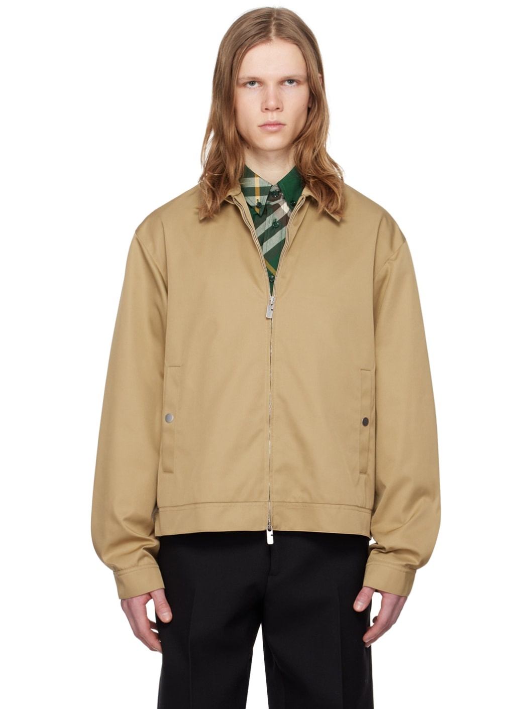 Cotton gabardine jacket. · Spread collar · Zip closure · Welt pockets · Adjustable press-stud tabs at back hem · Full cotton twill lining Supplier color: Flax