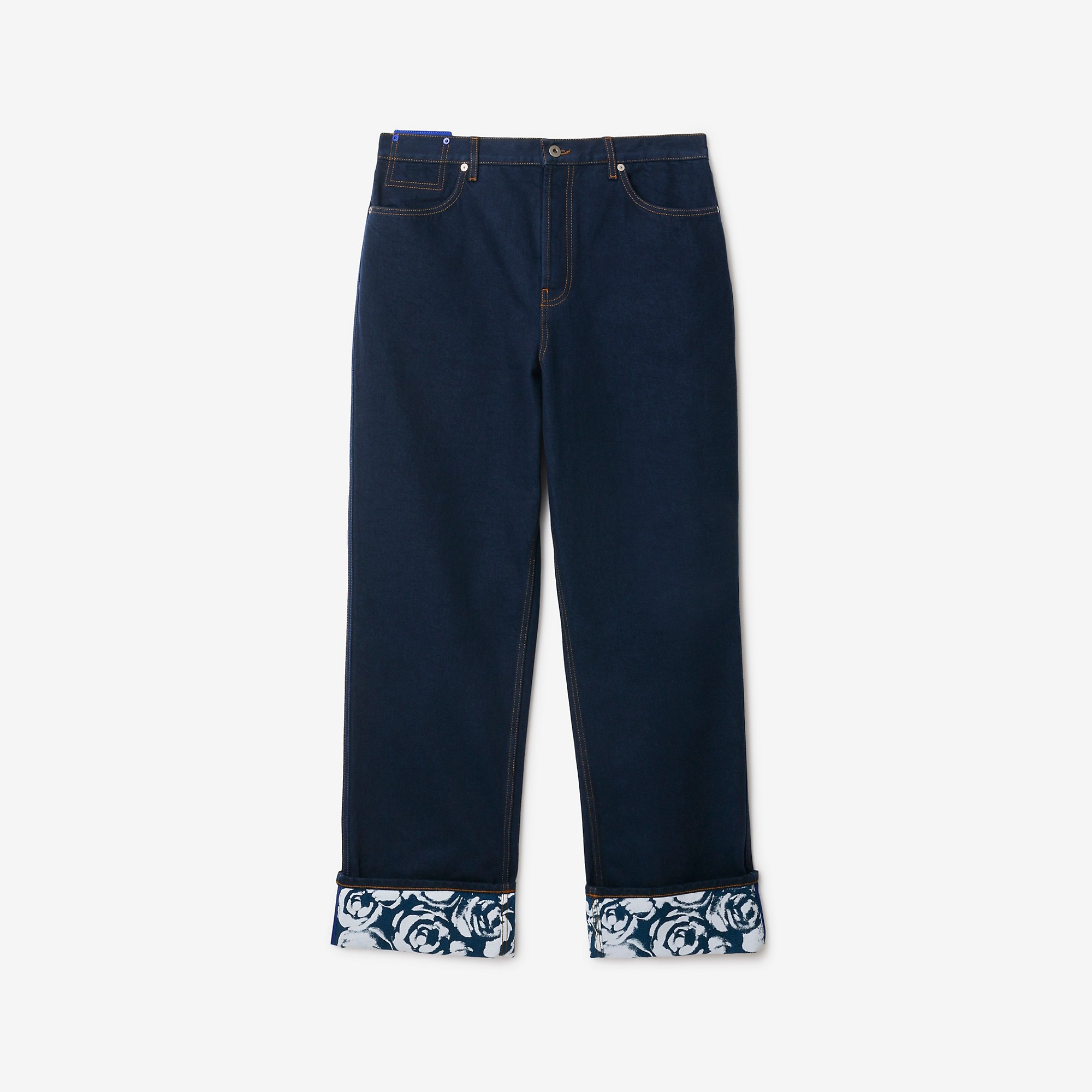 PRODUCT DETAILS A pair of jeans in Japanese heavyweight denim, cut to a regular fit. The style features a rose-print lining at the cuffs. - Inside leg length: 81.5cm/32.1in (size UK 32) - Model's height: 185cm/6ft 1in. Model wears size UK 32 Regular fit 100% cotton Trim: 100% calf leather Hand wash Made in Italy Item 80807741