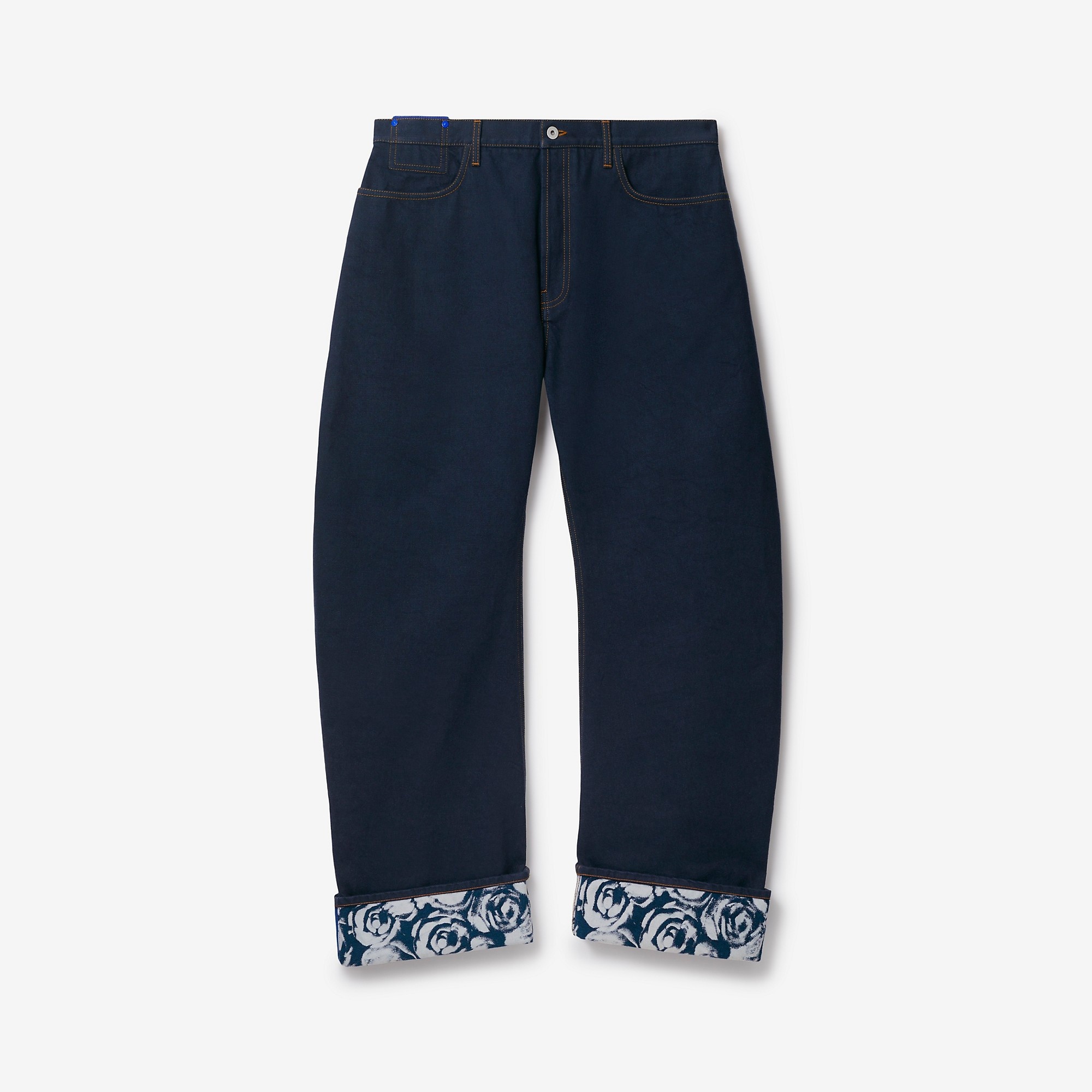 PRODUCT DETAILS Jeans in Japanese heavyweight denim with a rose-print lining at the cuffs. - Inside leg length: 81.5cm/32.1in (size UK 32) - Model’s height: 188cm/6ft 2in. Model wears size UK 32 100% cotton Trim: 100% calf leather Hand wash Made in Italy Item 80807791