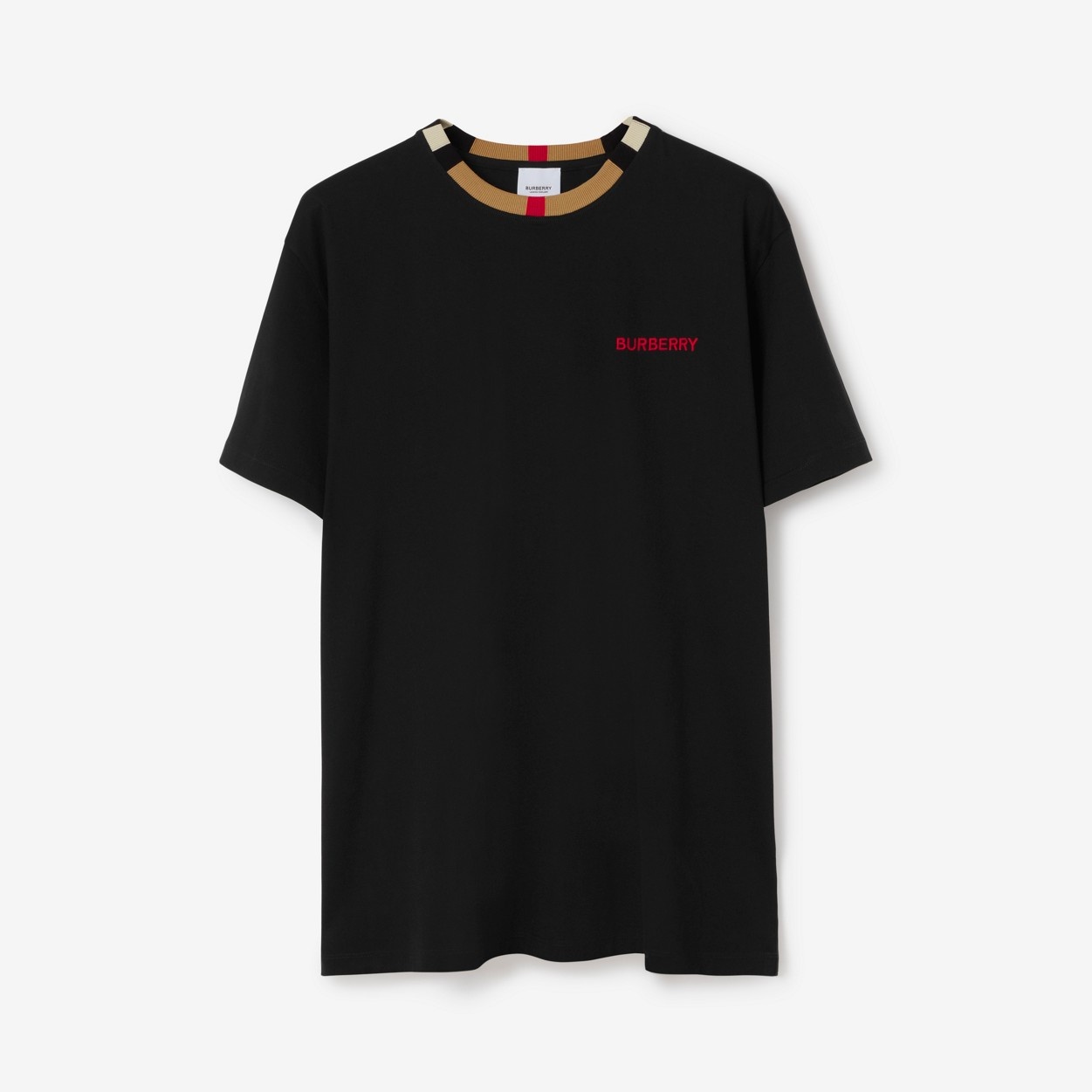 PRODUCT DETAILS A cotton T-shirt cut to a relaxed fit, highlighted with an embroidered logo and our Icon stripe at the collar. Relaxed fit. This style is cut to a loose silhouette. T-shirt length: 79cm/31in. This is based on a size UK M. 100% cotton Embroidered Burberry lettering at chest Machine wash Imported 80695381