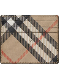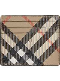 Coated canvas card holder in beige. · Check pattern printed throughout · Six card slots · Central note slot · H3.5" x W4" Supplier color: Sand 55% polyurethane, 25% polyester, 20% cotton. Made in Moldova 252376M163005