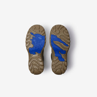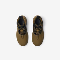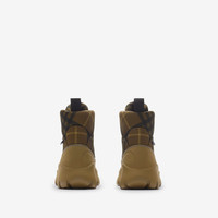 Product Details Hiking-inspired boots with a woven Burberry Check upper and matte rubber overshoe. The Italian-made style features a B shield toggle at the drawcord laces and is set on a chunky rubber sole moulded with our Equestrian Knight Design. - Drawcord closure - Rounded toe - Equestrian Knight Design label at side - Equestrian Knight Design at the sole - Comes with a dust bag - Item 80971781 Fabric & Care - Upper: 90% polyester, 10% calf leather - Trim: 40% polyester, 30% brass, 30% polyamide - Lining: 80% polyester, 20% calf leather - Sole: 100% rubber - Made in Italy