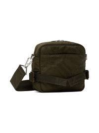 ECONYL® nylon-blend twill messenger bag in khaki. · Jacquard check pattern throughout · Adjustable and detachable crossbody strap · Zip pocket at face · Adjustable cinch tab at sides · Patch pocket at back face · Two-way zip closure · Patch and zip pocket at interior · Nylon taffeta lining · H8.25" x W9" x D2" Supplier color: Military