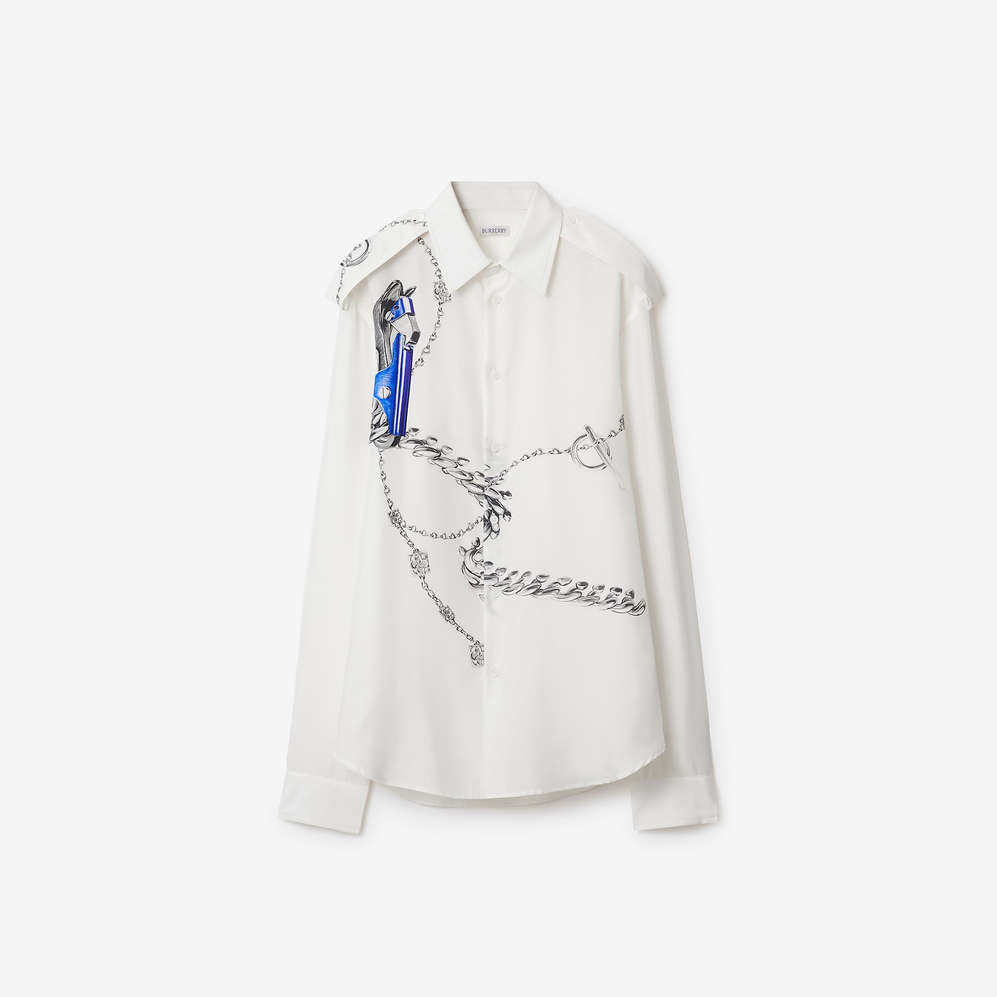 PRODUCT DETAILS A long-sleeved shirt tailored in Italy from silk poplin. The design is cut to an oversized fit and printed with hand-painted artwork featuring our jewellery and bag hardware. - Length: 82cm/32.3in (size UK M) - Model's height: 188cm/6ft 2in. Model wears size UK S Oversized fit 100% silk Buttons: mother-of-pearl Specialist dry clean Made in Italy Item 80883371