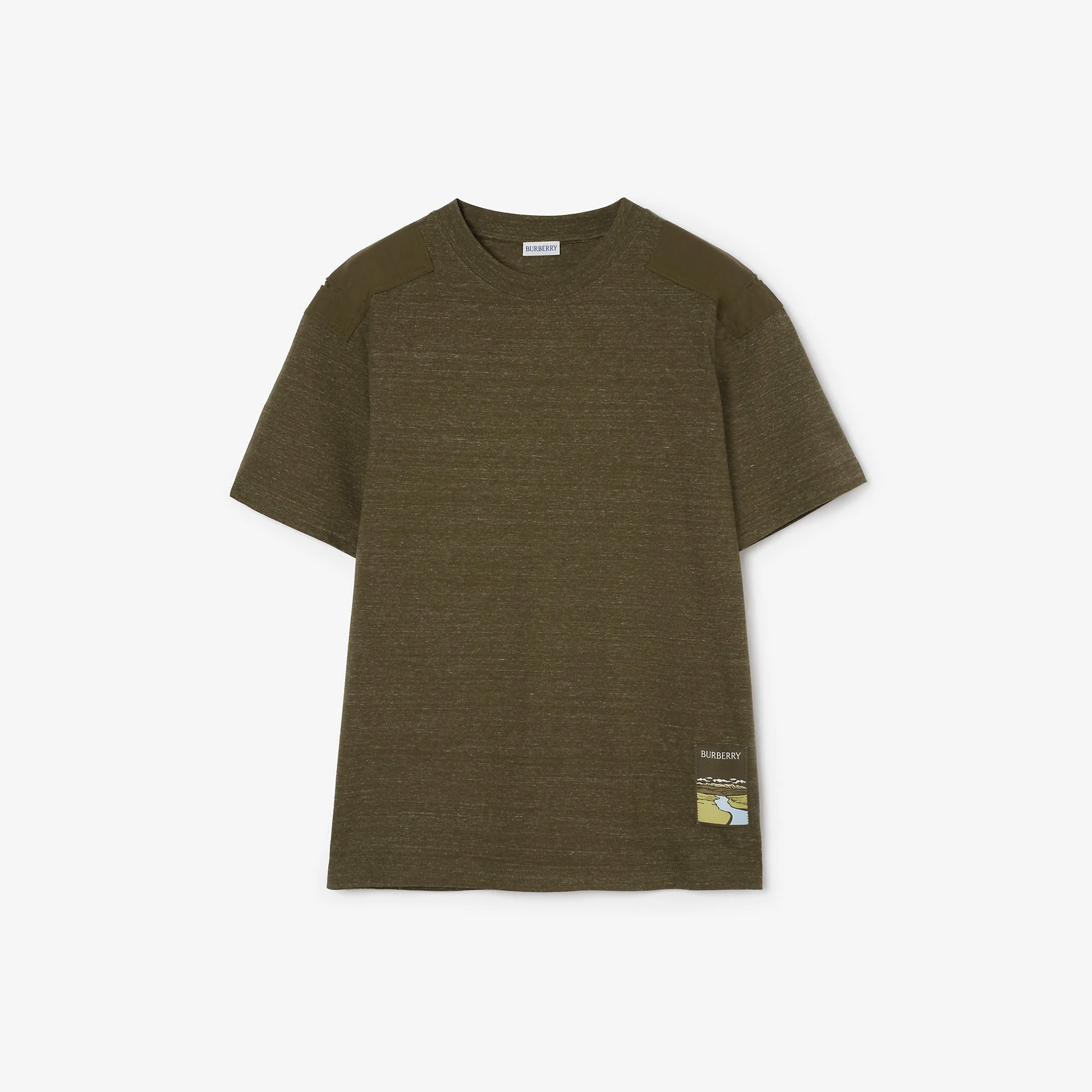 Product Details Relaxed fit: a looser cut than our regular fit. A crew-neck T-shirt in cotton melange jersey, cut to a relaxed fit and finished with cotton nylon gabardine shoulder patches. Part of our Gabardine Capsule, the design pays homage to the house’s iconic signature – a revolutionary fabric invented by Thomas Burberry, worn by explorers and everyday adventurers alike. A specially designed label marks the capsule, inspired by an archival campaign. - Rib-knit neckline - Machine wash - Item 81131061 Size & Fit - Relaxed fit: a looser cut than our regular fit. - Length: 74cm/29.1in (size UK L) Fabric & Care - 100% cotton - Collar: 98% cotton, 2% elastane - Trim: 69% cotton, 31% polyamide - Made in Portugal