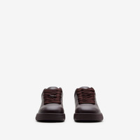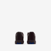 PRODUCT DETAILS Italian-made sneakers in smooth calf leather debossed with the Equestrian Knight Design. The mesh-lined style features barbed wire hardware at the laces and rubber soles moulded with archive Burberry lettering. Upper: 100% calf leather Trim: 70% polyester, 30% brass Lining: 50% polyester, 40% cotton, 10% sheep leather Sole: 100% thermoplastic polyurethane Made in Italy Item 80833911