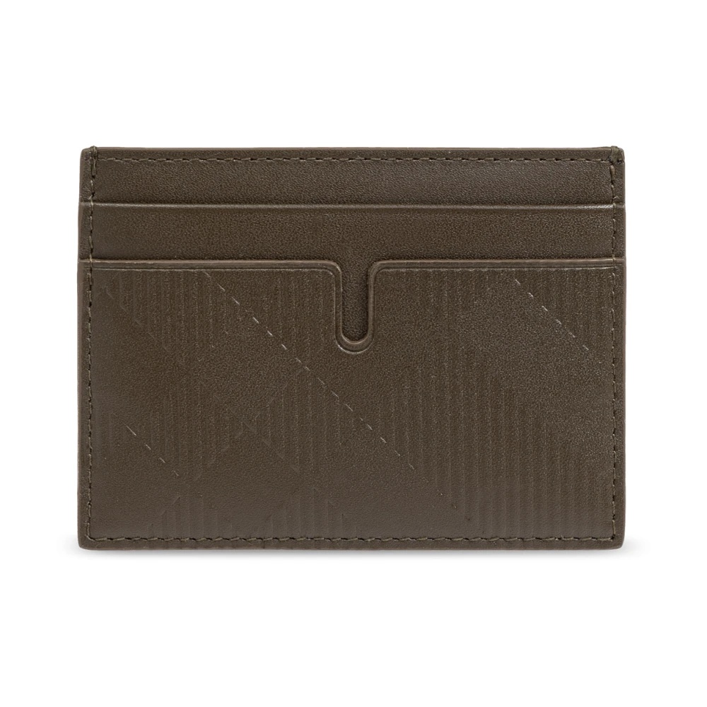 Introducing the refined LEATHER CARDHOLDER from the esteemed brand BURBERRY, epitomizing elegance fused with functionality. Crafted from the highest quality CALF LEATHER, this cardholder boasts shades of brown, enriched with a subtle, geometric decoration of parallel lines and stitching that forms a V shape, lending the product a distinctive character. The interior of the cardholder has been thoughtfully designed for functionality - equipped with FIVE CARD SLOTS, allowing easy access to them thanks to a cleverly designed inverted U-shaped cutout. The meticulous stitching along the edges highlights the high quality of craftsmanship, making this cardholder not just an essential accessory, but a marker of good taste. WHY PURCHASE THIS PRODUCT? * SUPERIOR QUALITY MATERIAL: 100% calf leather ensures durability and elegance. * DESIGNER ACCENT: A Burberry design is synonymous with class and unparalleled style. * PRACTICALITY: Five card slots with easy access thanks to the intelligent cutout. * UNIQUE DETAILS: The subtle pattern and precise stitching attest to the care for every detail. Height: 7,5cm Width: 10cm Designer color: Green Designer ID: 8091513 A3743-MILITARY Material & Care 100% Calf Leather