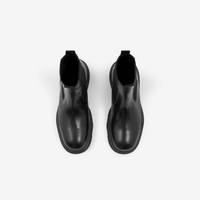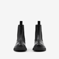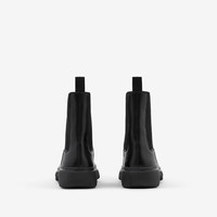 Product Details Italian-made Chelsea boots in calf leather with pull tabs. The design features chunky rubber soles moulded with archive Burberry lettering. - Rounded toe - Elasticated sides - Check insole - Burberry lettering at sole - Item 80766701 Fabric & Care - Upper: 90% calf leather, 6% polyester, 4% elastane - Lining: 70% calf leather, 18% cotton, 6% polyester, 4% elastane, 2% polyurethane - Sole: 100% rubber - Made in Italy