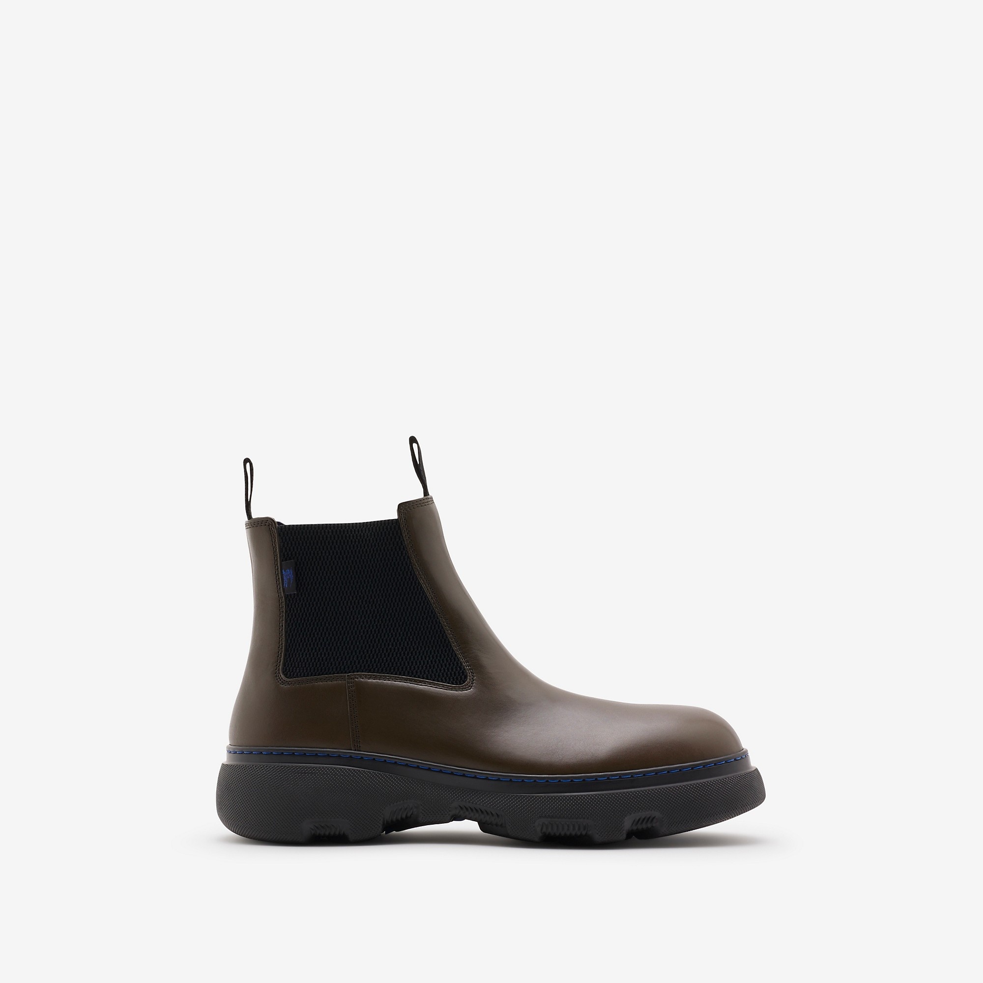 Product Details Italian-made Chelsea boots in brushed calf leather with pull tabs. The design features chunky rubber soles moulded with archive Burberry lettering. - Rounded toe - Leather insole - Burberry lettering at sole - Comes with a dust bag - Item 80925901 Fabric & Care - Upper: 90% calf leather, 6% polyester, 4% elastane - Trim: 100% polyester - Lining: 85% calf leather, 6% polyester, 5% goat suede, 4% elastane - Sole: 100% rubber - Made in Italy