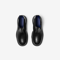 Product Details Italian-made Chelsea boots in brushed calf leather with pull tabs. The design features chunky rubber soles moulded with archive Burberry lettering. - Rounded toe - Leather insole - Burberry lettering at sole - Comes with a dust bag - Item 80925881 Fabric & Care - Upper: 90% calf leather, 6% polyester, 4% elastane - Trim: 100% polyester - Lining: 85% calf leather, 6% polyester, 5% goat suede, 4% elastane - Sole: 100% rubber - Made in Italy
