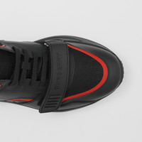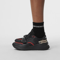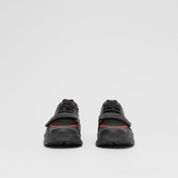 PRODUCT DETAILS Our chunky sneaker panelled in smooth leather, nylon and Vintage check, set on an accentuated, curved sole. The design is subtly printed with our logo. Upper: 42% calf leather, 35% polyamide, 12% cotton, 11% polyester Trim: 70% polyester, 10% polyamide, 10% thermoplastic polyurethane, 10% zinc alloy Linings: 100% sheep leather; 61% polyester, 36% sheep leather, 3% polyurethane Sole: 100% rubber Lace-up and Velcro tab closure Raised Burberry lettering at strap, printed Burberry lettering at heel Made in Italy Item 80569201
