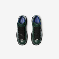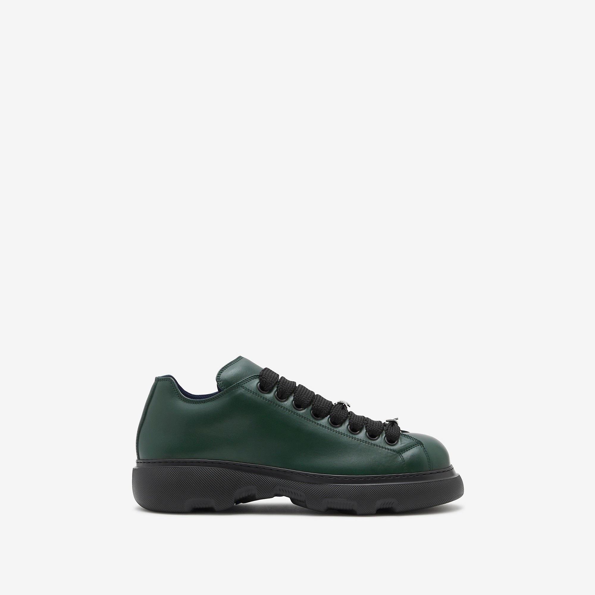 PRODUCT DETAILS Italian-made shoes in smooth calf leather. The style features barbed wire hardware at the wide laces and light rubber soles moulded with archive Burberry lettering. Upper: 100% calf leather Trim: 94% polyester, 6% brass Lining: 100% calf leather Sole: 85% EVA, 15% thermoplastic polyurethane Made in Italy Item 80821691