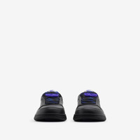 Product Details Italian-made sneakers in smooth calf leather, with a detachable shield charm and embossed Equestrian Knight Design. The mesh-lined style features check laces and rubber soles moulded with archive Burberry lettering. - Rounded toe - Equestrian Knight Design label at tongue - Leather insole - Burberry lettering at sole - Comes with a dust bag - Item 80952271 Fabric & Care - Upper: 100% calf leather - Trim: 60% polyester, 40% thermoplastic polyurethane - Lining: 42% polyester, 29% calf leather, 22% sheep leather, 7% goat suede - Sole: 100% thermoplastic polyurethane - Made in Italy