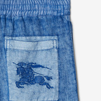 PRODUCT DETAILS Shorts in Italian-woven linen that is washed for a soft finish. The style is cut to an oversized fit and appliquéd with the Equestrian Knight Design. - Inside leg length: 16.5cm/6.5in (size UK M) - Model's height: 187cm/6ft 2in. Model wears size UK M Oversized fit 100% linen Machine wash Made in Italy Item 80817931