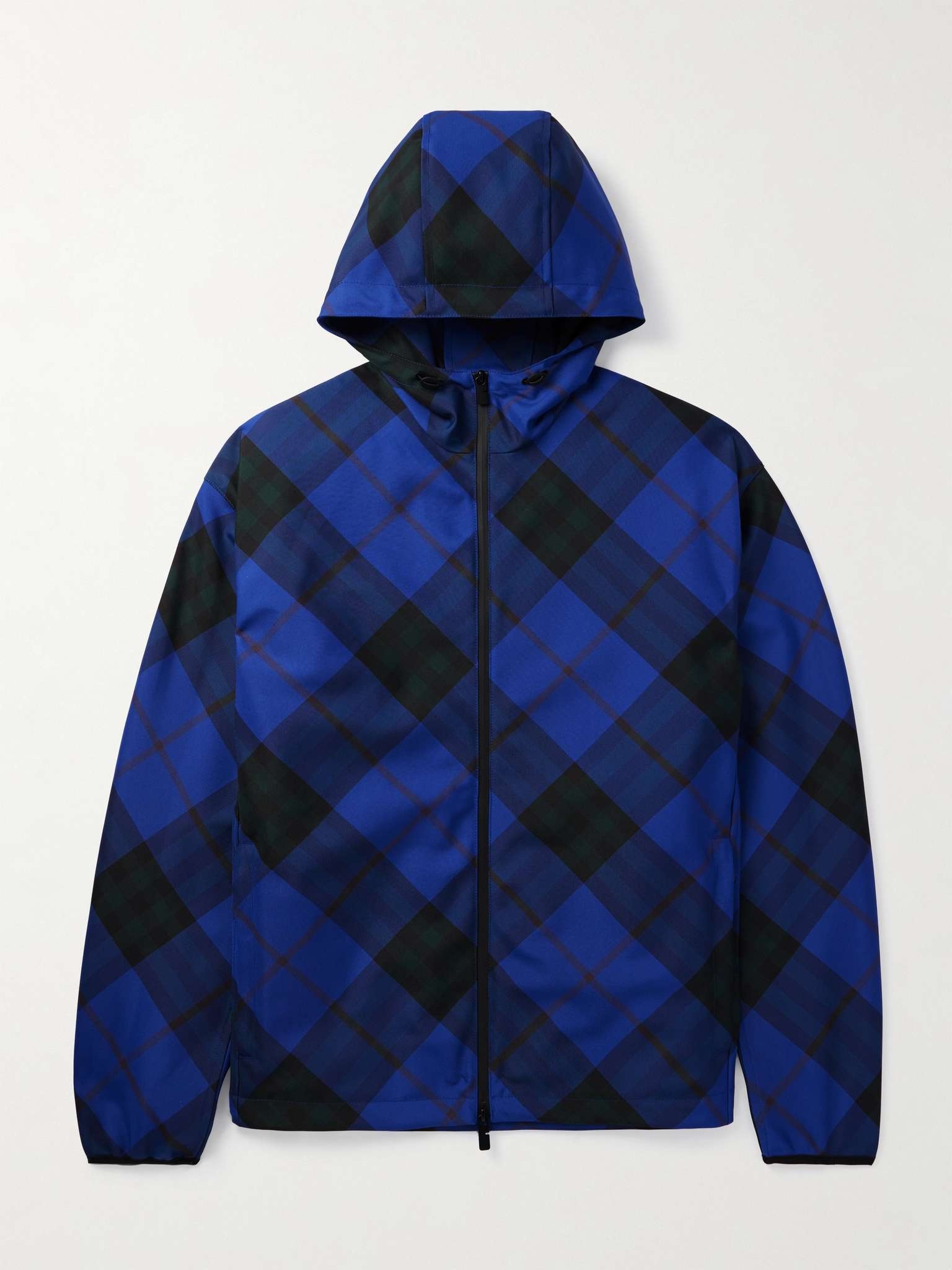 Chief Creative Officer Daniel Lee looks to Burberry's archives when designing - this hooded track jacket is printed in a bold rendition of its iconic check pattern. Appliquéd with a matching 'Equestrian Knight' emblem at the back, it's been made in Italy from hard-wearing twill and has a laminated two-way zip fastening to keep out moisture. Size & Fit - S/M/L sizing Details & Care - Tonal-blue, black and red twill - Two-way zip fastening - 100% polyester - Dry clean