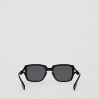 PRODUCT DETAILS A contemporary silhouette milled from black acetate, accented with a polished metal stripe detail and our logo. Frame width: 14.5cm/5.7in Frame height: 4.8cm/1.9in Acetate frame Scratch-resistant dark grey lenses with 100% UV protection Printed Burberry lettering at temple Made in Italy Comes with a hard leather case and cleaning cloth 40819161