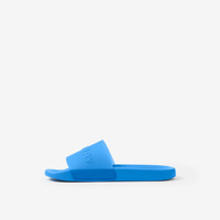 PRODUCT DETAILS Slides highlighted with our logo, styled with a contoured insole for comfort. Upper: 100% thermoplastic polyurethane Sole: 100% rubber Slip-on style Raised Burberry lettering at front, embossed Burberry lettering at side Imported Item 80697841