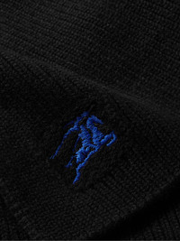 Burberry's scarf has been knitted in the United Kingdom from soft, insulating cashmere. You'll find the house's heritage 'Equestrian Knight' motif embroidered at one end in contrasting royal-blue threads. Size & Fit - Length: 181cm / 71.3in - Width: 26cm / 10.2in Details & Care - Black cashmere - 100% cashmere - Dry clean