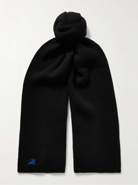 Logo-Embroidered Ribbed Cashmere Scarf