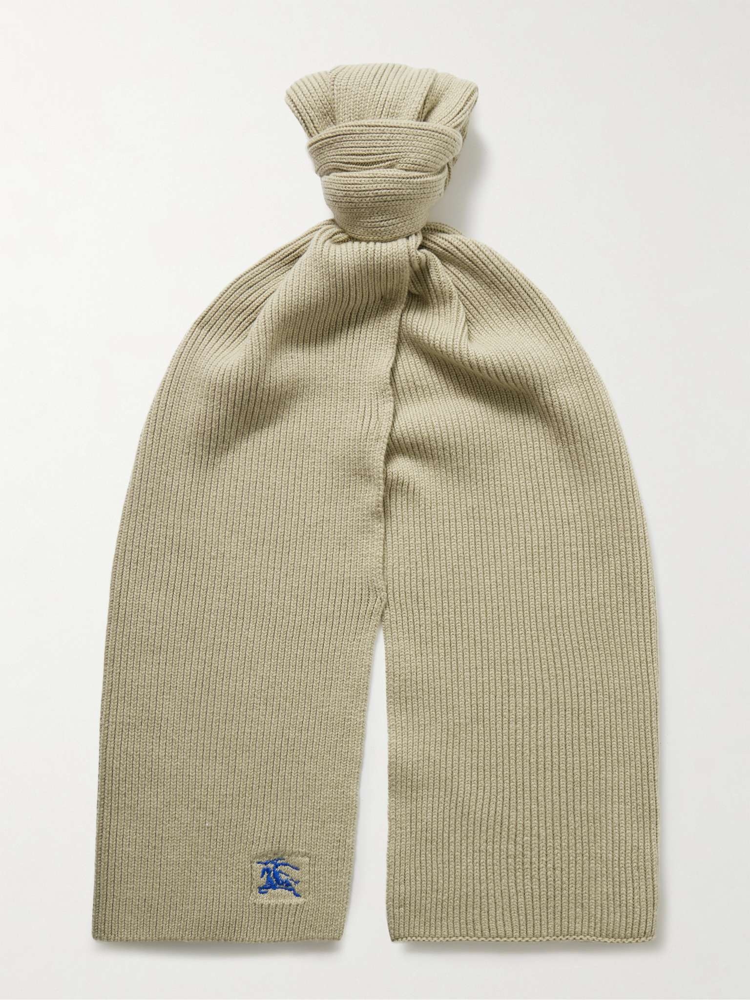 Burberry's scarf has been knitted in the United Kingdom from soft, insulating cashmere. You'll find the house's heritage 'Equestrian Knight' motif embroidered at one end in contrasting royal-blue threads. Size & Fit - Length: 180cm / 70.9in - Width: 25cm / 9.8in Details & Care - Sage-green cashmere - 100% cashmere - Dry clean - Designer colour: Hunter