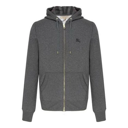 Burberry Logo Embroidery Cotton Zipper Jacket Coat Male Grey 40155591