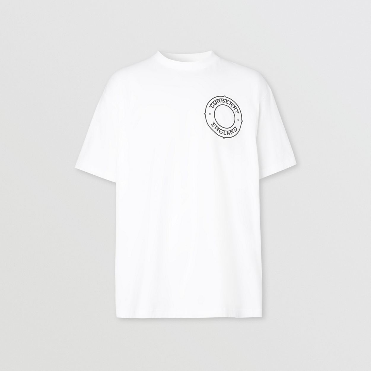 An oversized cotton T-shirt printed with a logo graphic inspired by the hardware on our signature bags. This style fits large to size. For a regular fit, please take a size smaller than normal. T-shirt length: 74cm/29.1in. This is based on a size UK M as proportions change slightly according to size. 100% cotton Trim: 98% cotton, 2% elastane Machine wash Imported Item: 80345601