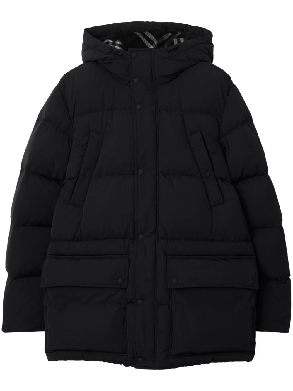 THIS LOGO-PATCH PUFFFER COAT FEATURES A CLASSIC HOOD, BLACK FRONT PRESS-STUD FASTENING, AND LONG SLEEVES FOR COMFORT AND WARMTH. WITH TWO SLIT POCKETS AT THE CHEST AND TWO SIDE FLAP POCKETS, IT OFFERS PRACTICALITY AND STYLE. THE LOGO PATCH AT THE SLEEVE ADDS A TOUCH OF SOPHISTICATION.