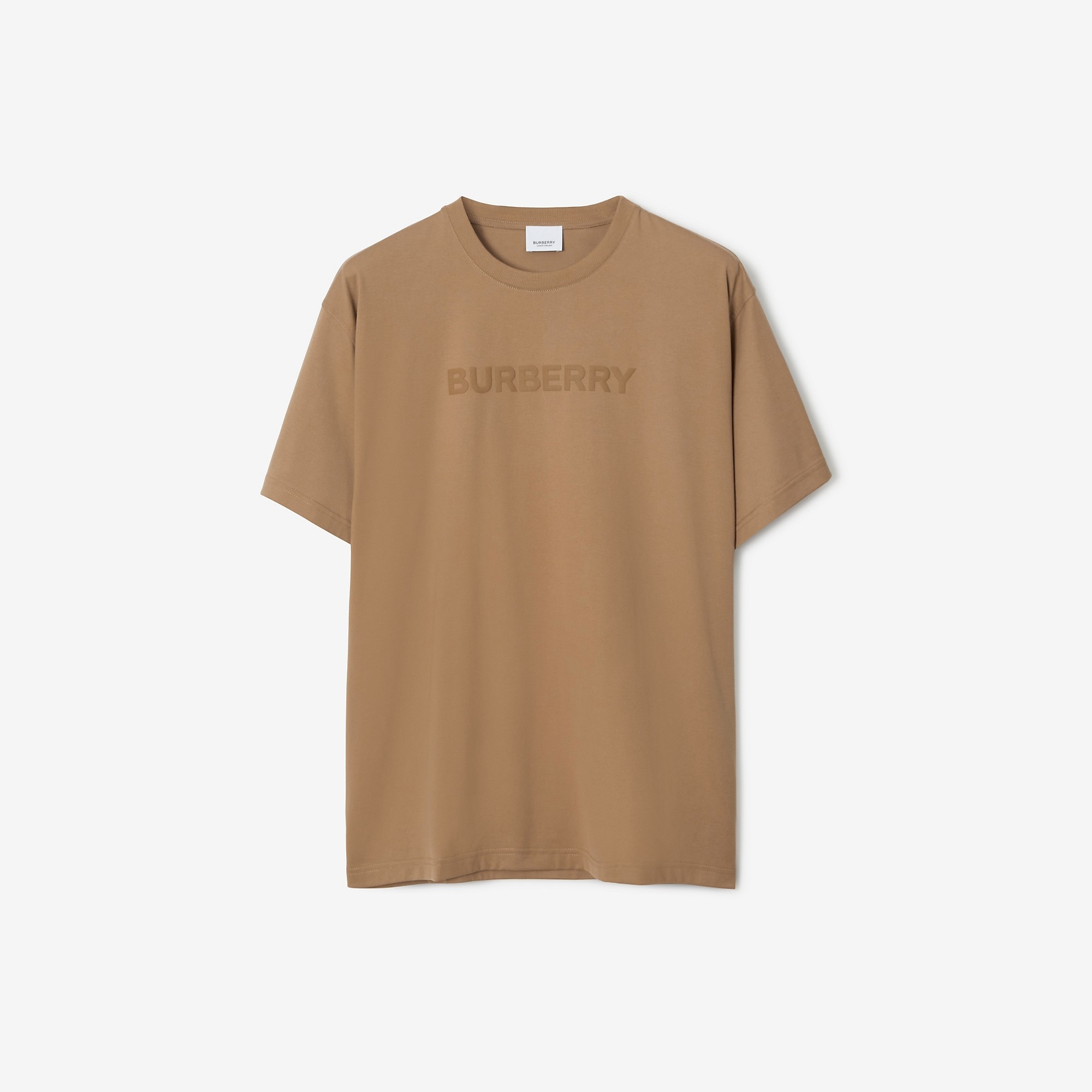 Product Details A cotton jersey T-shirt printed with our logo. The crew-neck style is cut to a relaxed fit. - Rib-knit neckline - Printed Burberry lettering - Relaxed fit: a looser cut than our regular fit. Consider taking a size down. - Machine wash - *Containing organic cotton - Item 80831281 Size & Fit - Length: 76cm/29.9in (size UK L) - Model’s height: 186cm/6ft 1in. Model wears size UK L Fabric & Care - 100% cotton* - Trim: 98% cotton, 2% elastane - Made in Portugal